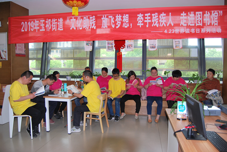 4月21日玉祁街道文体站组织青少年在玉祁文体中心举办“全民阅读、追逐梦想”——4.23世界读书日活动。当天,玉润残疾人之家10名残疾人为大家带来手语《感恩的心》,他们充满激情的表演感动了现场每一位观众。